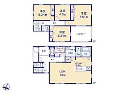 | 間取り | 4LDK 間取り内訳:リビングダイニングキッチン 16.6帖(1階)・和室 5畳(1階)・洋室 7帖(2階)・洋室 5.2帖(2階)・洋室 5.2帖(2階) |