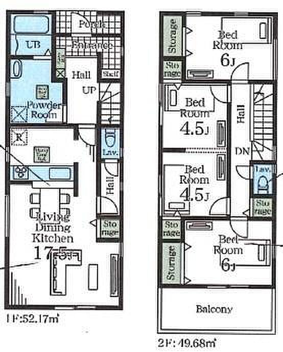| 間取り | 4LDK 間取り内訳:リビングダイニングキッチン 17.5帖(1階)・洋室 6帖(2階)・洋室 6帖(2階)・洋室 4.5帖(2階)・洋室 4.5帖(2階) |