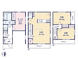 | 間取り | 2SLDK 間取り内訳:収納 6帖(1階)・リビングダイニングキッチン 20.1帖(2階)・洋室 6帖(3階)・収納 3帖(3階)・洋室 6.5帖(3階) |