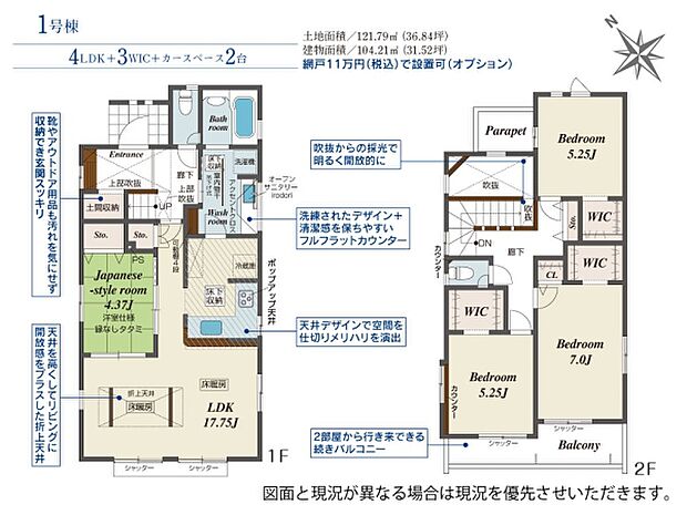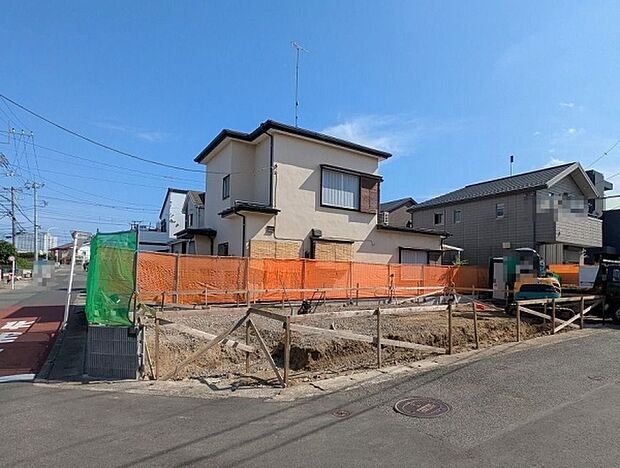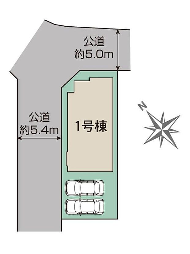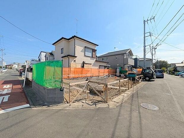 開放感のある角地区画。車2台並列駐車可能です。家事効率の良い、回遊動線を採り入れた間取り。