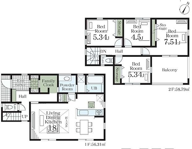 敷地面積は広々55坪!開放感溢れる折上天井付きのLDKはゆとりある18帖!お車は並列2台駐車可能です