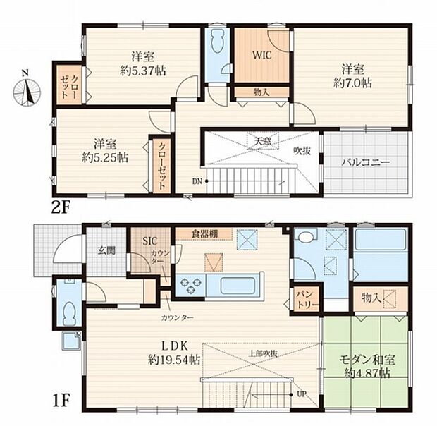 | 間取り | 4LDK 間取り内訳:リビングダイニングキッチン 19.5帖(1階) |