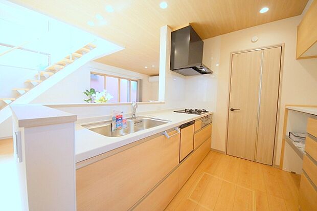 ゆとりの敷地約37坪。車2台並列駐車可能です。建物完成済み。お気軽に内覧していただけます。