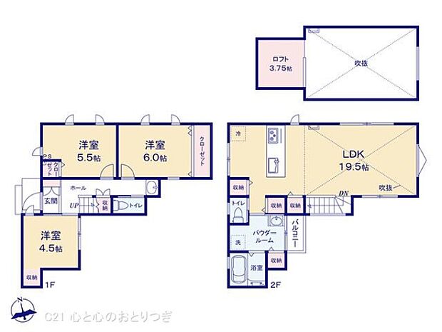 間取り内訳:リビングダイニングキッチン 19.5帖(2階)