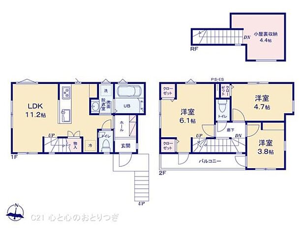| 間取り | 3LDK 間取り内訳:リビングダイニングキッチン 11.2帖(1階) |