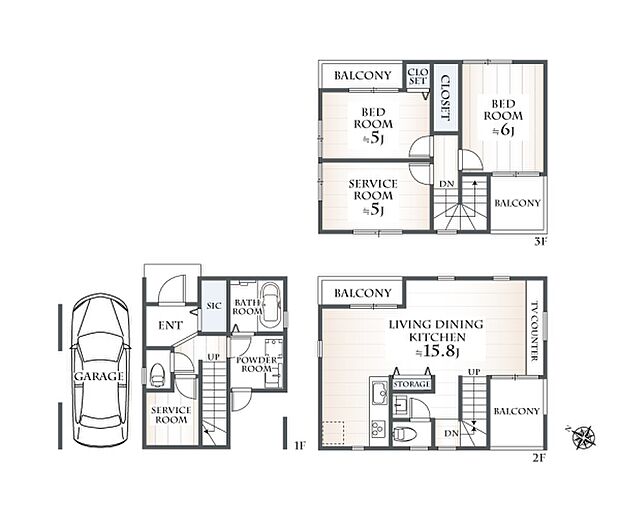 | 間取り | 2SLDK 間取り内訳:リビングダイニングキッチン 15.8帖(2階) |