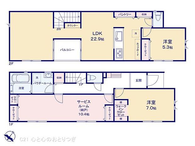 間取り内訳:リビングダイニングキッチン 22.9帖(2階)