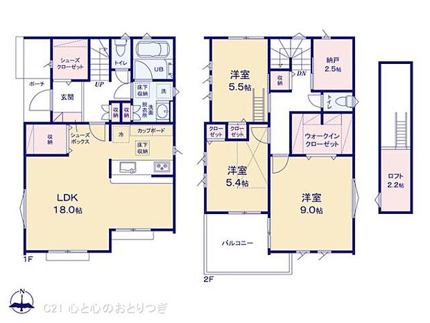 明るさと風通しに恵まれた、開放感あふれる南西角地。ロフトやWICなど使い勝手の良い収納が随所に。