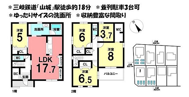 ■三岐鉄道「山城」駅徒歩約18分■ゆったりサイズの洗面所■徒歩15分圏内に施設充実■閑静な住宅街
