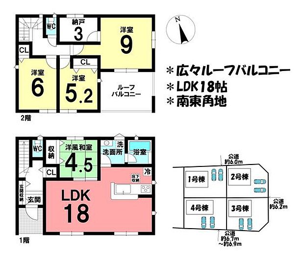 ■JR「河原田」駅徒歩約20分■並列駐車2台可能■南東角地■LDK18帖■納戸3帖■ルーフバルコニー