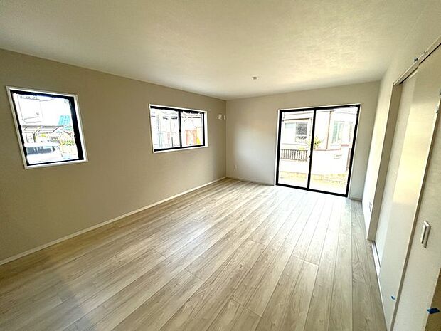 完成済みにつきいつでもご見学いただけます◯(エステート白馬・武田郷子)角地の明るいお家です。キッチンに大きなパントリースペースや1階洗面室にリネン収納もあります。並列2台駐車可能です。周辺環境も◯