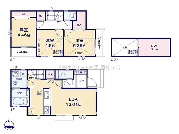 全居室南向き、南側隣地通路。リビングを見渡せる対面キッチン。リビング階段。水廻り集中。ロフト付。2面バルコニー。