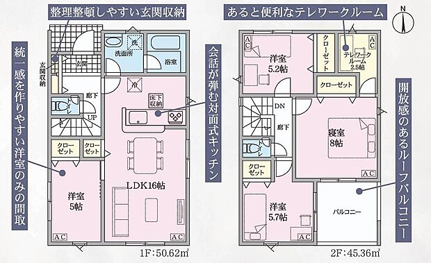 ◆会話が弾む対面式キッチン♪統一感を作りやすい洋室のみの間取り♪整理整頓しやすい玄関収納♪あると便利なテレワークルーム◎洗濯物がよく乾きそう♪南向きルーフバルコニー◎駐車場4台可能♪