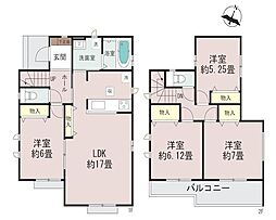間取り内訳:リビングダイニングキッチン 17帖(1階)・洋室 7.2帖(2階)・洋室 5.2帖(2階)・洋室 5帖(2階)・和室 4.8畳(1階)