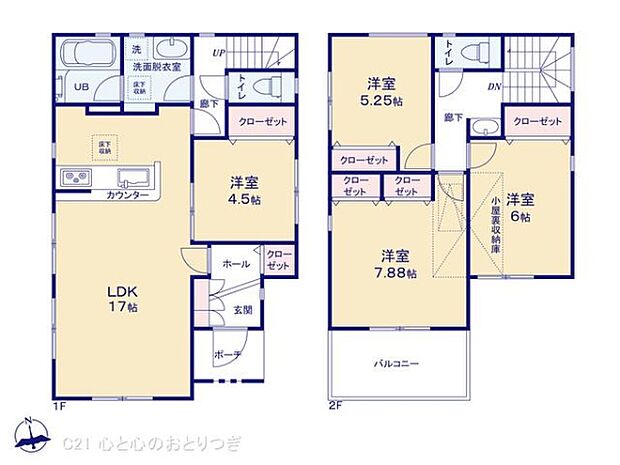 | 間取り | 4LDK 間取り内訳:リビングダイニングキッチン 17帖(1階) |