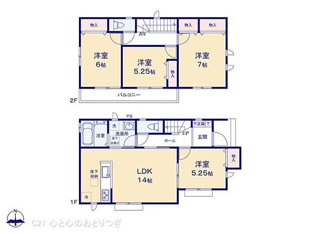 間取り内訳:リビングダイニングキッチン 14帖(1階)