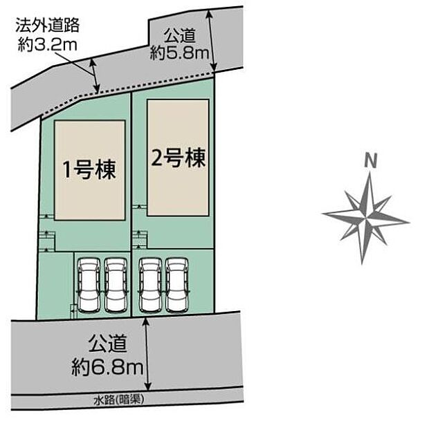 カースペースは広々並列2台駐車可能です◎南面道路接道&前面道路6m以上!陽当り良好・駐車も楽々♪