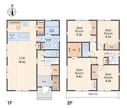 | 間取り | 3LDK(ロフト約3帖) 間取り内訳:リビングダイニングキッチン 19.1帖(1階)・洋室 11.3帖(2階)・洋室 7帖(2階)・洋室 4.5帖(2階) |
