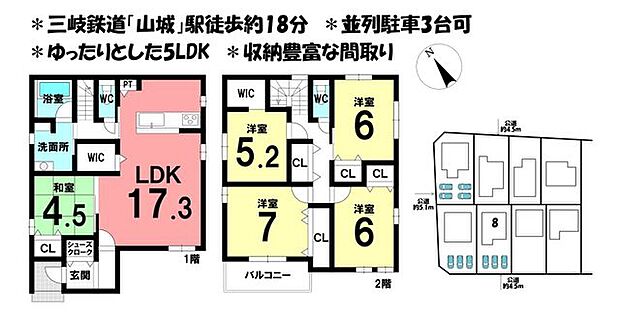 ■三岐鉄道「山城」駅徒歩約18分■並列駐車3台可■ゆったり5LDK■整形地■徒歩15分圏内に施設充実
