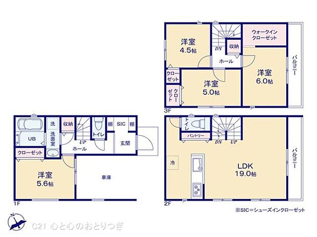 「古淵」駅まで徒歩9分!2階に配置したLDKは19帖とゆとりある広さです。便利なパントリー付き。