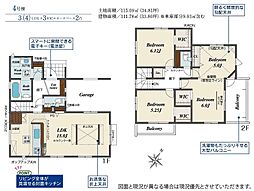 | 間取り | 4LDK 間取り内訳:リビングダイニングキッチン 16帖(1階)・和室 4.5畳(1階)・洋室 6帖(2階)・洋室 6.5帖(2階)・洋室 7.8帖(2階) |