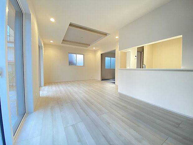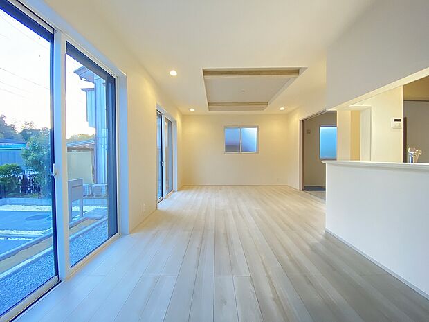 敷地面積ゆとりある52坪以上 折上天井採用のLDKは広々17帖 両面道路に面し開放感溢れるお住まい。