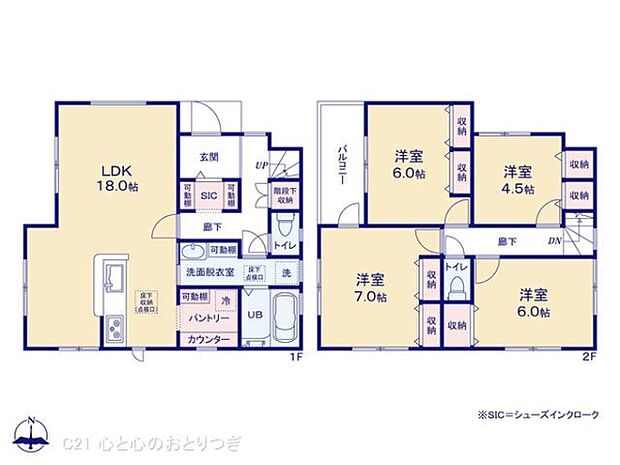 間取り内訳:リビングダイニングキッチン 18帖(1階)