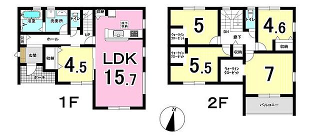 | 間取り | 5LDK 間取り内訳:リビングダイニングキッチン 15.7帖・洋室 4.5帖・洋室 5帖・洋室 5.5帖・洋室 4.6帖・洋室 7帖 |