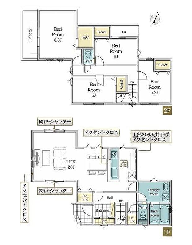 | 間取り | 4LDK 間取り内訳:リビングダイニングキッチン 20帖(1階)・洋室 8.3帖(2階)・洋室 5帖(2階)・洋室 5帖(2階)・洋室 5.2帖(2階) |