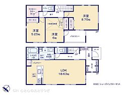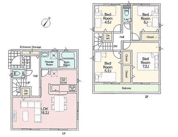 間取り内訳:リビングダイニングキッチン 18.2帖(1階)・洋室 4.5帖(2階)・洋室 5.2帖(2階)・洋室 7.2帖(2階)・洋室 5帖(2階)