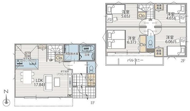 間取り内訳:リビングダイニングキッチン 17.8帖(1階)・洋室 5.6帖(2階)・洋室 6.3帖(2階)・洋室 6帖(2階)・洋室 4.6帖(2階)