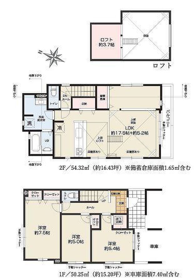 ロフト・全部屋収納有で機能的にお部屋が片付く♪間仕切り可能な広々としたLDK、上部吹き抜けで開放感◎
