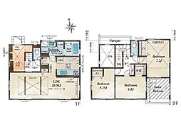 間取り内訳:リビングダイニングキッチン 19帖(1階)・洋室 4.5帖(2階)・洋室 6帖(2階)・洋室 6.5帖(2階)・収納 5.2帖(2階)