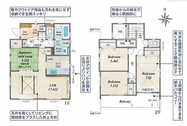 ゆとりある敷地約41坪超。会話が弾む対面キッチンのあるLDK。玄関上部は吹抜になっており開放的。