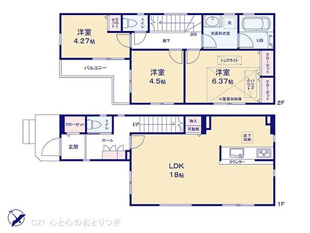 | 間取り | 3LDK 間取り内訳:リビングダイニングキッチン 18帖(1階) |