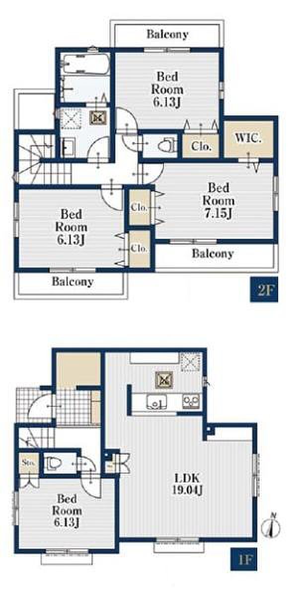 | 間取り | 4LDK 間取り内訳:洋室 6.1帖(1階)・リビングダイニングキッチン 19帖(1階)・洋室 6.1帖(2階)・洋室 6.1帖(2階)・洋室 7.1帖(2階) |