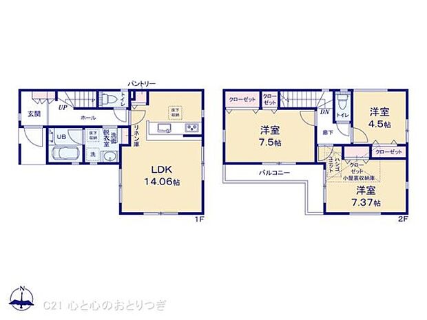 | 間取り | 3LDK 間取り内訳:リビングダイニングキッチン 14帖(1階) |