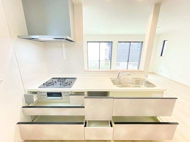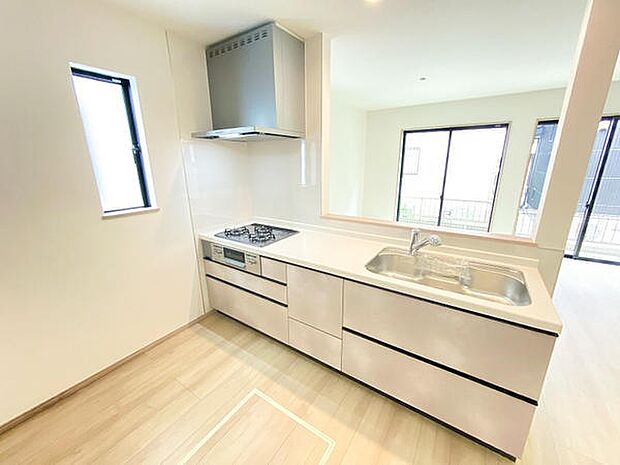 全居室2面採光で通風良好。ご家族が顔を合わせる機会が自然と増えるリビング階段を採用しています。