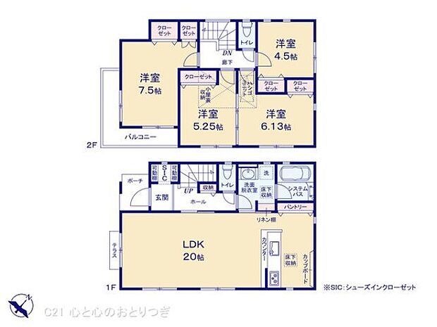 間取り内訳:リビングダイニングキッチン 20帖(1階)