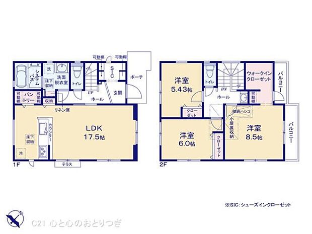 | 間取り | 3LDK 間取り内訳:リビングダイニングキッチン 17.5帖(1階) |
