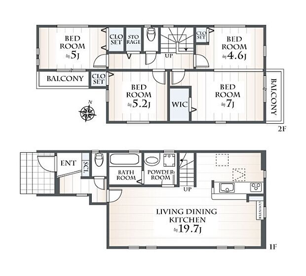 間取り内訳:リビングダイニングキッチン 19.7帖(1階)