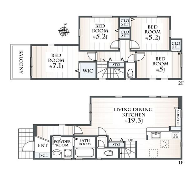 | 間取り | 4LDK 間取り内訳:リビングダイニングキッチン 19.3帖(1階) |
