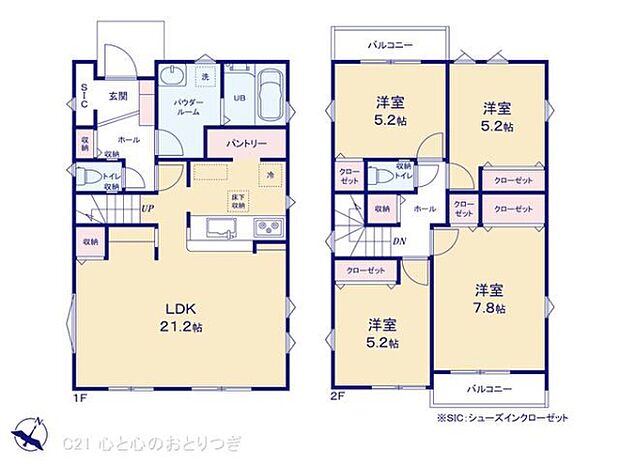 | 間取り | 4LDK 間取り内訳:リビングダイニングキッチン 21.2帖(1階) |