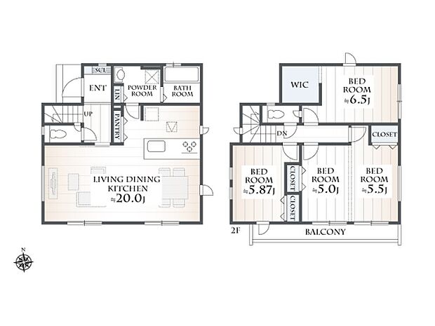 間取り内訳:リビングダイニングキッチン 20帖(1階)