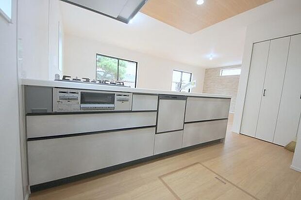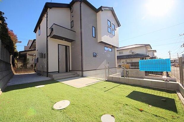 敷地は広々約50坪。車2台並列駐車可能です。シャッター雨戸や食洗器など充実の設備・仕様が魅力。