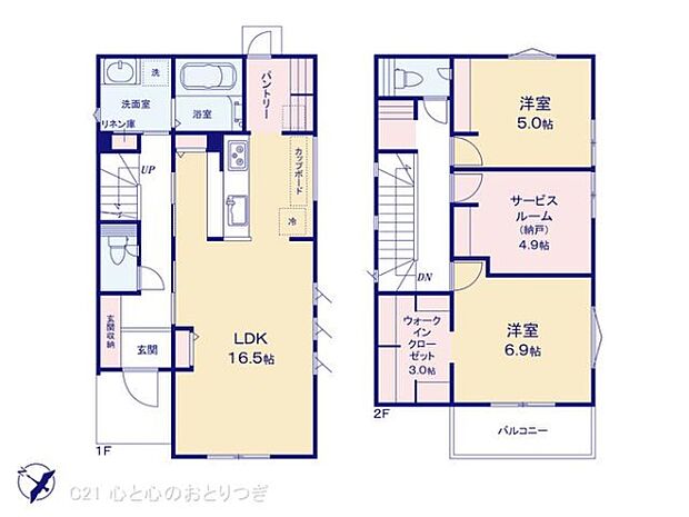 | 間取り | 2SLDK 間取り内訳:リビングダイニングキッチン 16.5帖(1階) |