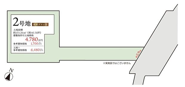 • 「建築条件付き土地」の「建物プラン例」は、土地購入者の設計プランの一例であり、プランの採用可否は任意です。