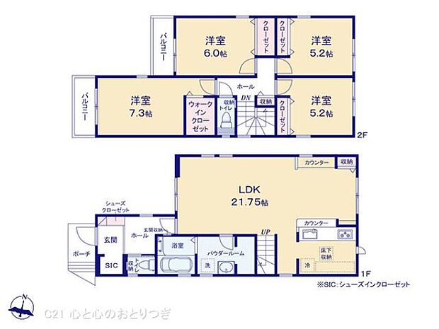 | 間取り | 4LDK 間取り内訳:リビングダイニングキッチン 21.7帖(1階) |