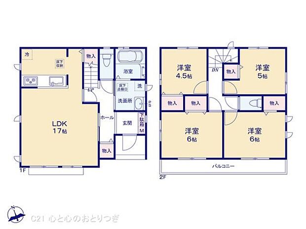 | 間取り | 4LDK 間取り内訳:リビングダイニングキッチン 17帖(1階) |