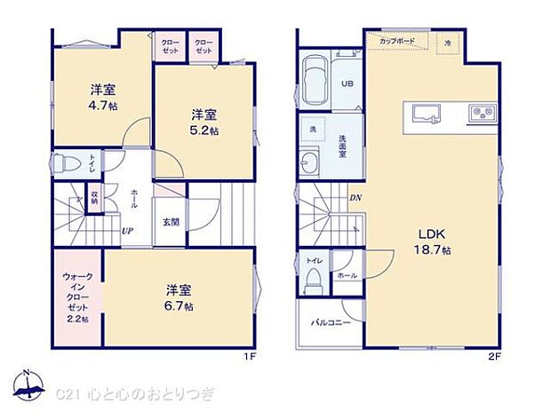 | 間取り | 3LDK 間取り内訳:リビングダイニングキッチン 18.7帖(2階) |